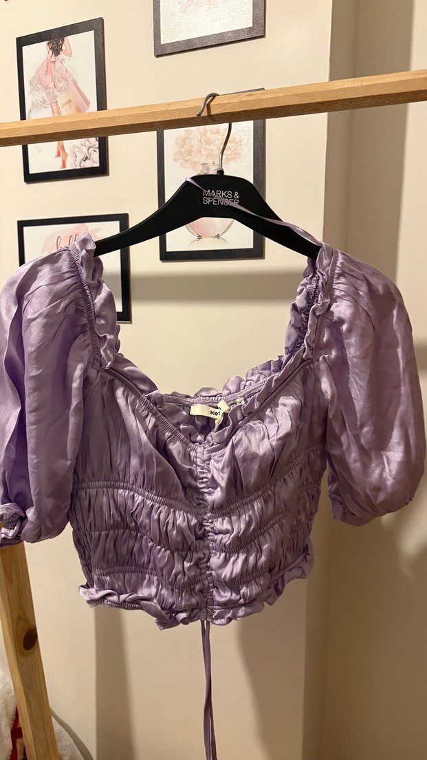 Mor Mini Saten Bluz V Yaka Bluz