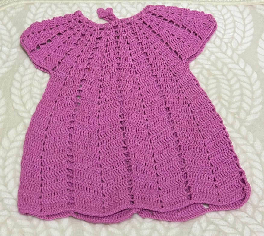 Mor renkte, nakış desenli ve yumuşak dokulu bebek önlüğü, rahat kullanım sunar.