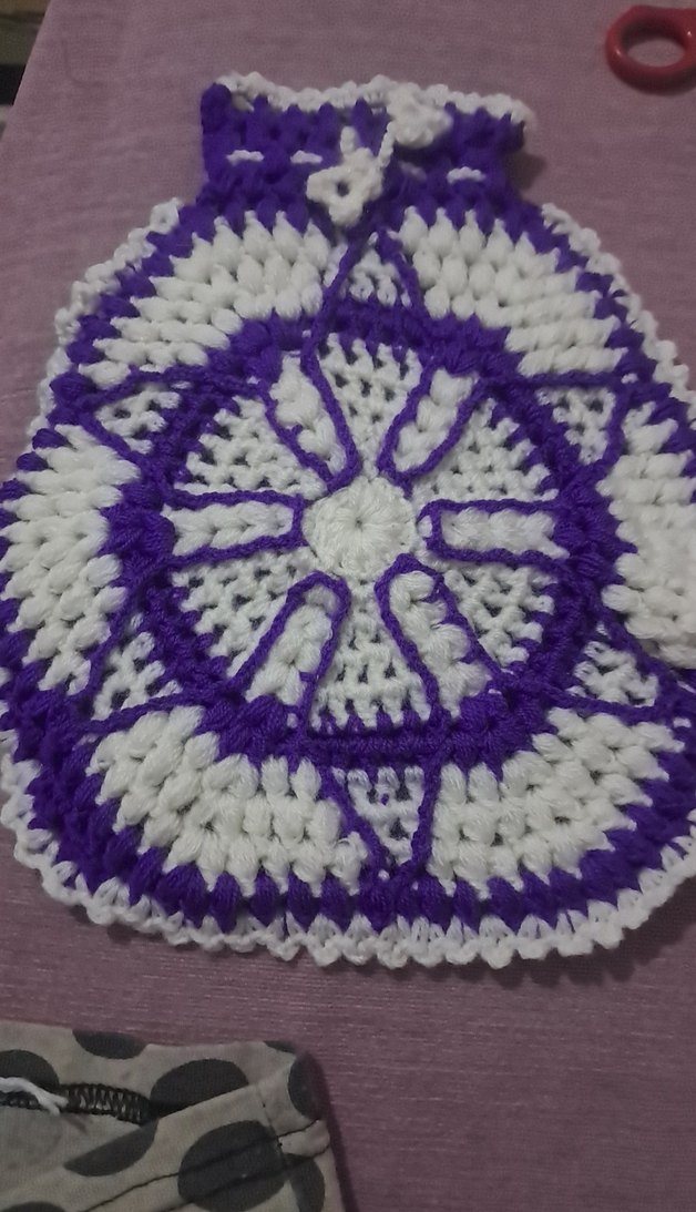 Bu mor ve beyaz renklerde nakışlı desenlere sahip Banyo Lifi Yumuşak dokulu, el yapımıdır.