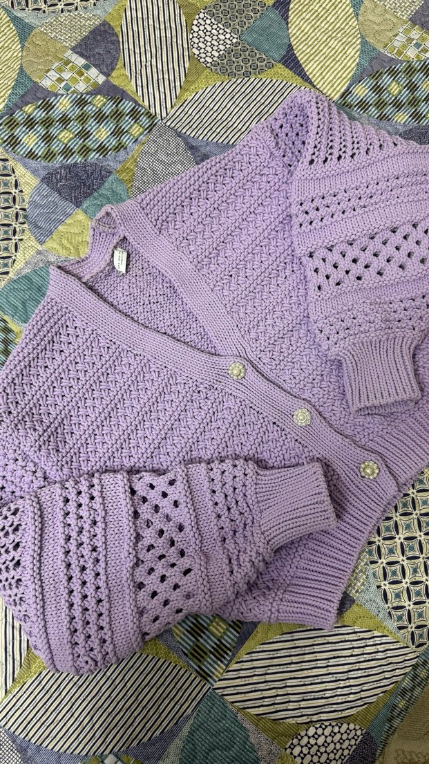 Mor renkli, nakışlı ve gevşek kesim bohem tarzda kadın hırka. Uzun kollu, V yakalı ve günlük kullanıma uygun. Sıfır