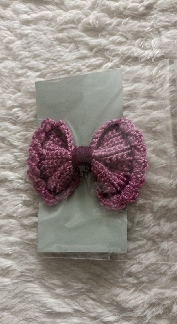 Pastel mor renkte, nakışlı fiyonk detaylı, bohem tarzda yumuşak dokulu çocuk saç bandı.