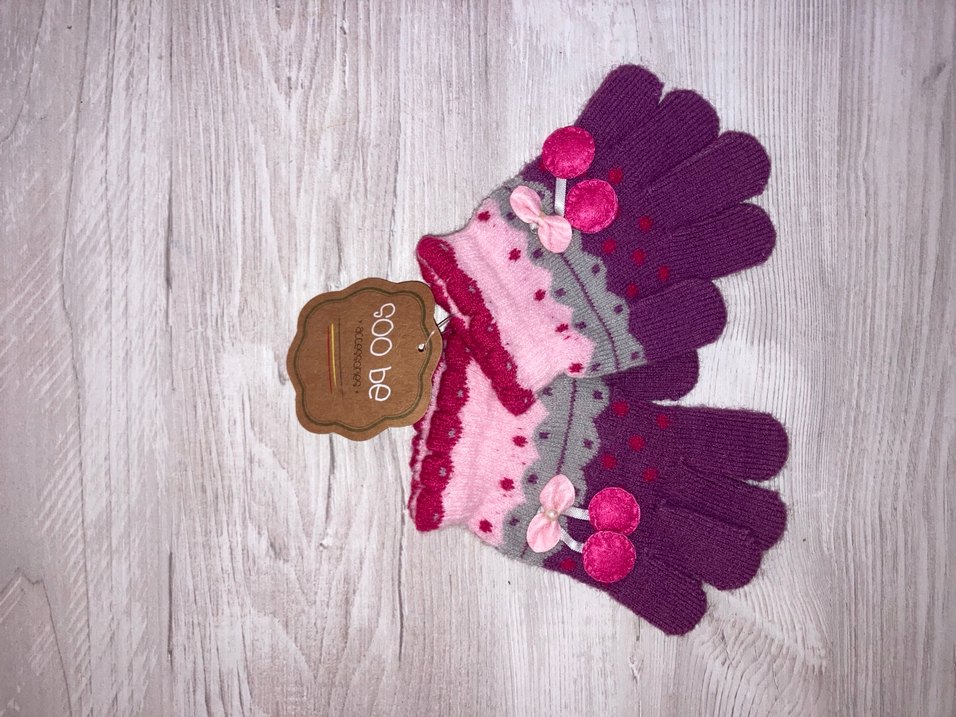 Nakışlı detaylar ve süslü fiyonklarla renkli mor kız çocuk eldiveni, bohem tarzda.