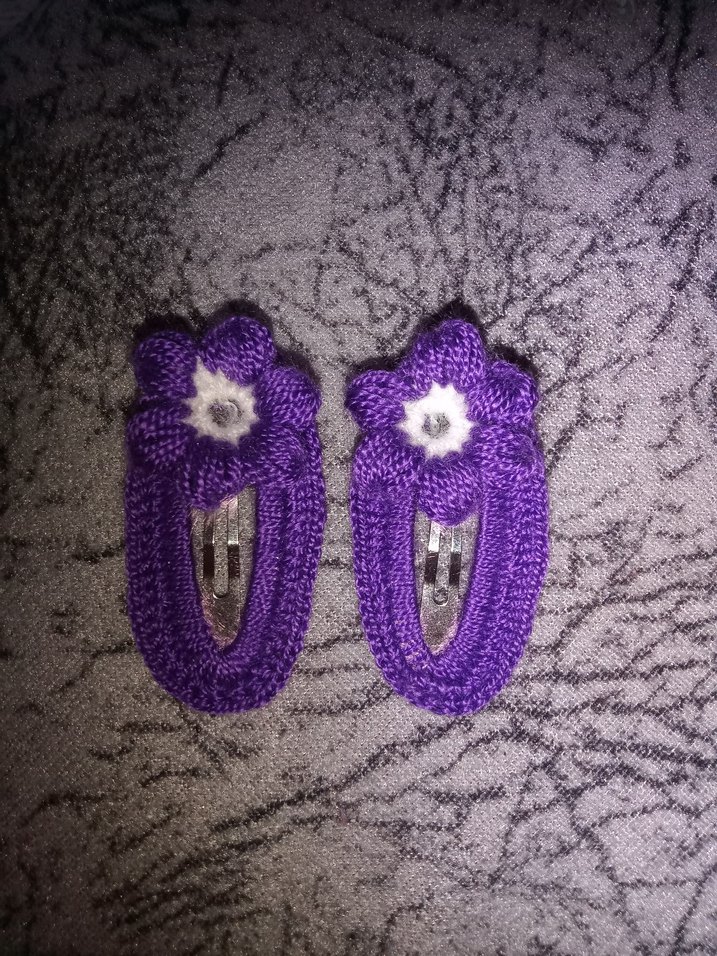 Mor Nakışlı Örgü Çiçekli Çocuk Toka