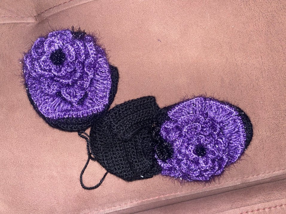 Koyu mor nakış detaylı örgü patik babet şeklinde örülmüş , tarzda şık bir görünüm sağlar. 36 numara