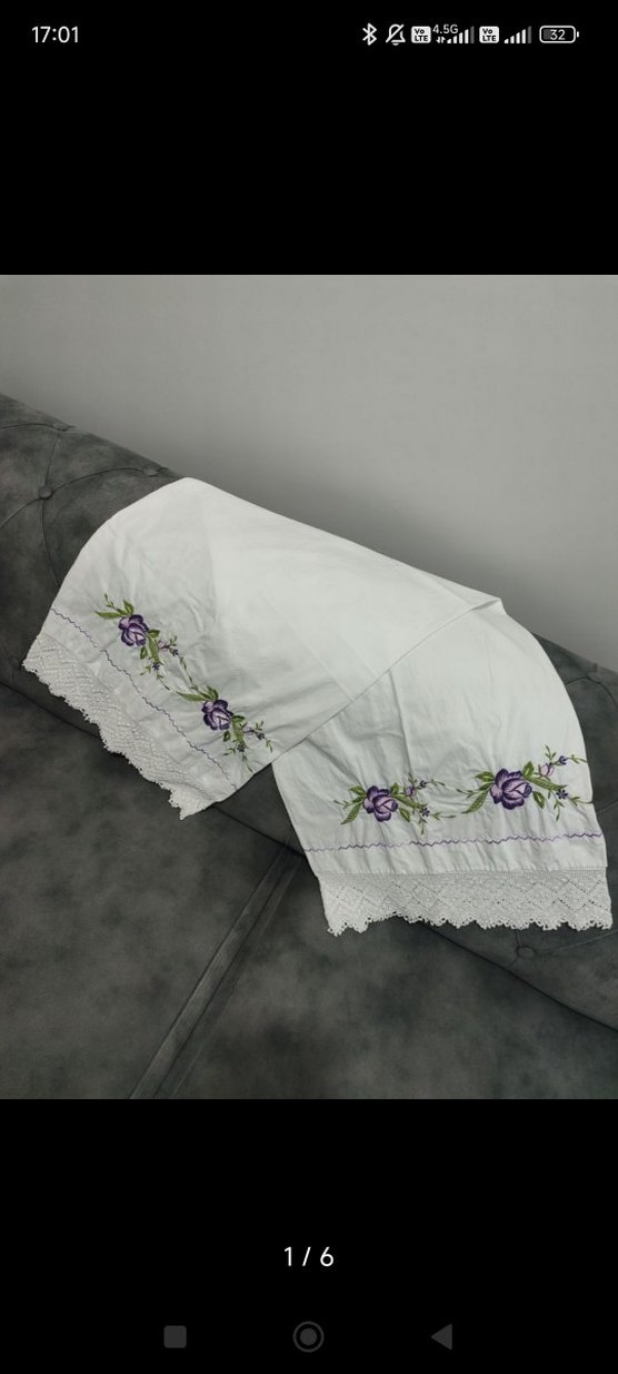 Yumuşak beyaz kumaş üzerine işlenmiş mor çiçek nakışları ve dantel kenar detayına sahip yastık kılıfı. Boy 1.25 cm. Yanında 2 tane yastık uçlarına takmak için Pembe kılıf hediyedir. #yastık #yastıkkılıfı #nakışyastık #işlemeyastık
