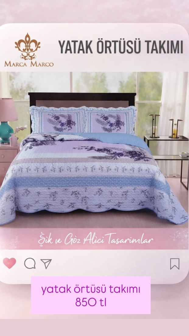Mor pastel renkli, nakışlı desenlere sahip yatak örtüsü takımı. Marka Marco'nun zarif tasarımı ve uyumlu yastık kılıfları içerir. ️
