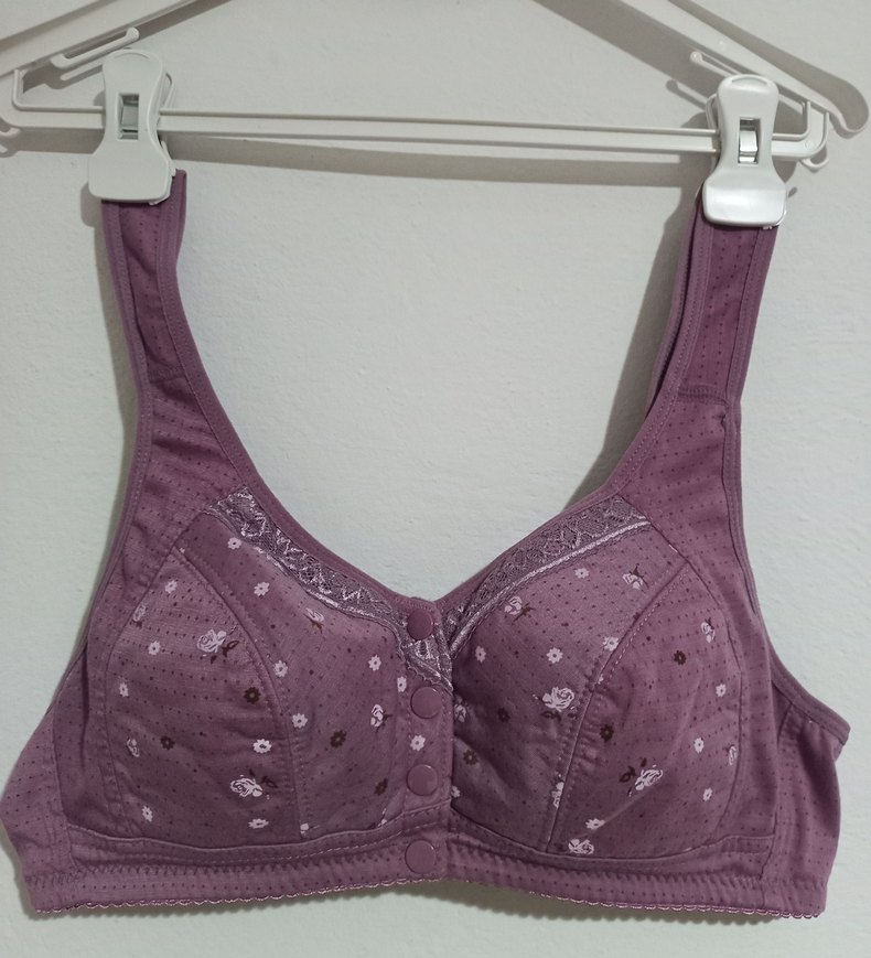 Mor renkte, nakış detaylı ve ön düğmeli konvansiyonel tarzda rahat bir sütyen. Günlük kullanım için uygundur.