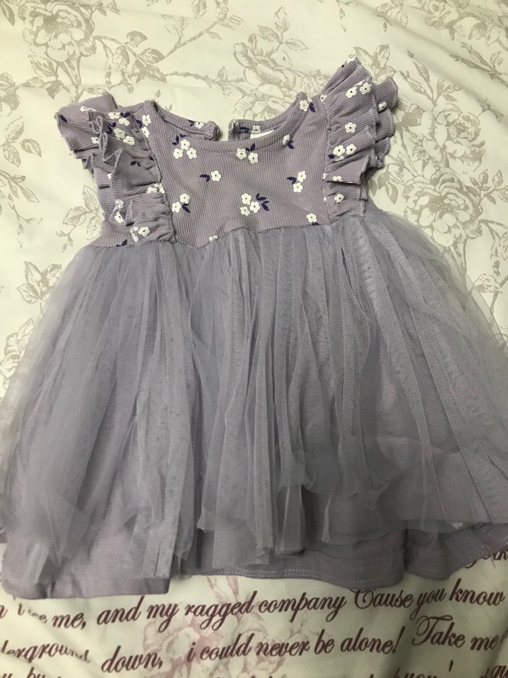 Mor Nakışlı Volanlı Kız Elbisesi