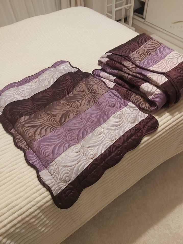 Koyu mor renklerde, nakışlı desenlere sahip yumuşak dokulu yatak örtüsü. Yatak odanıza şık bir dokunuş sağlar. ️