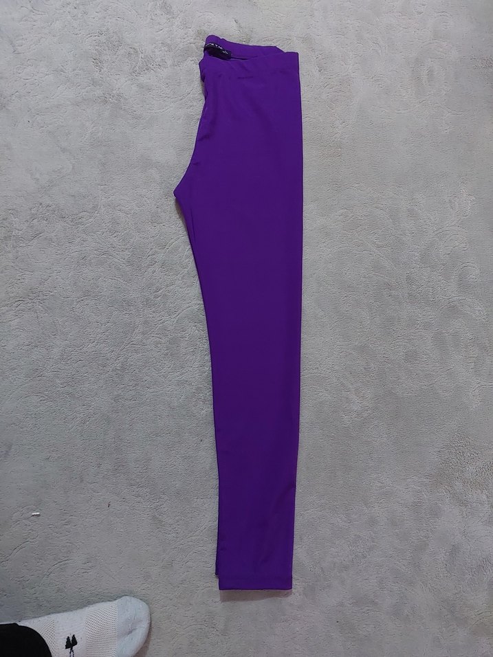 Mor renkte, elastik bel bantlı, yumuşak ve sıcak dokulu, normal boy kadın tayt. Spor için uygun sade tasarım. ♀️