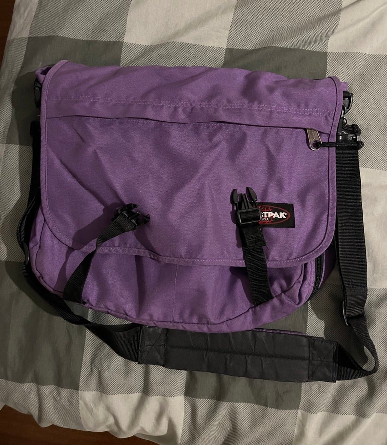 Koyu mor renkte, desen içermeyen omuz çantasıdır. Çoklu bölmeleri ve ayarlanabilir askıları vardır. Eastpak markadır