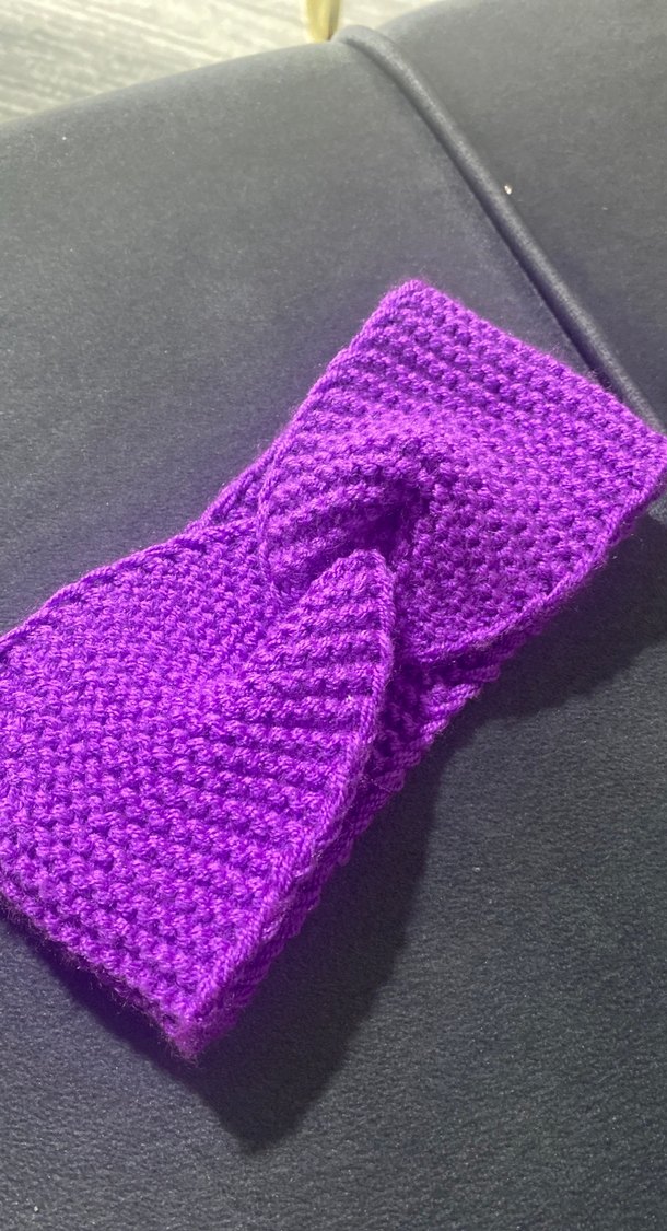 Mor renkli, bebek tokası yumuşak örme kumaştan yapılmış rahat ve renkli bir aksesuardır.