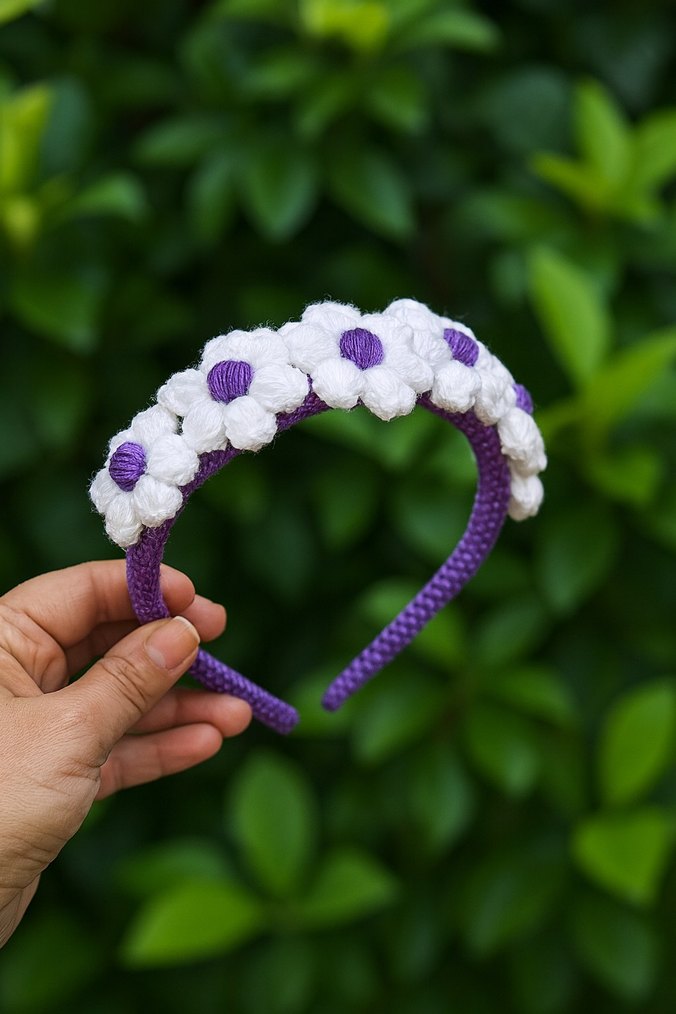 Mor Örgü Çiçekli Çocuk Saç Bandı