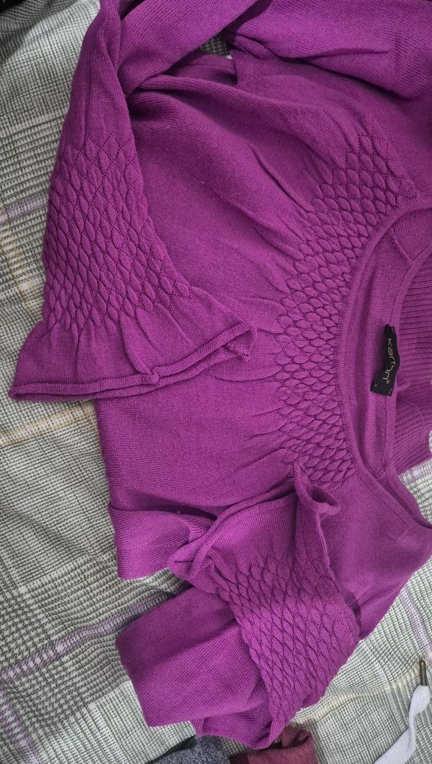 Mor renkli, ince örgü detaylı, uzun kollu ve bisiklet yaka kadın kazak. Yumuşak sentetik kumaştan, günlük kullanıma uygun rahat bir model. ✨