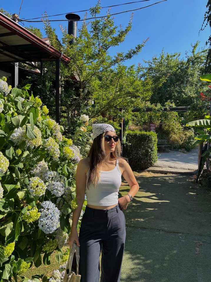 Bu kadın bandanası, mor renkli örgü tasarımıyla bohem ve retro stilini yansıtır. Rahat ve huzurlu bir görünüm için uygundur.