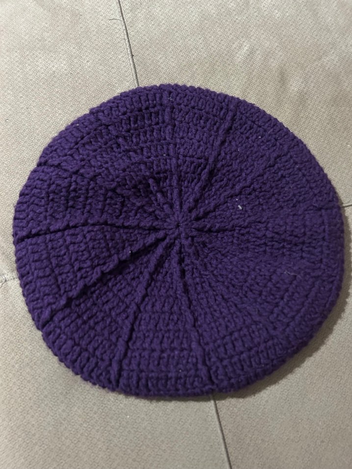 Mor renkli, yumuşak örgü iplikten örülmüş kadın bere, rahat ve renkli bir aksesuar sunar. Sade tasarımı temel ve karşı kültür tarzlarına uygundur.