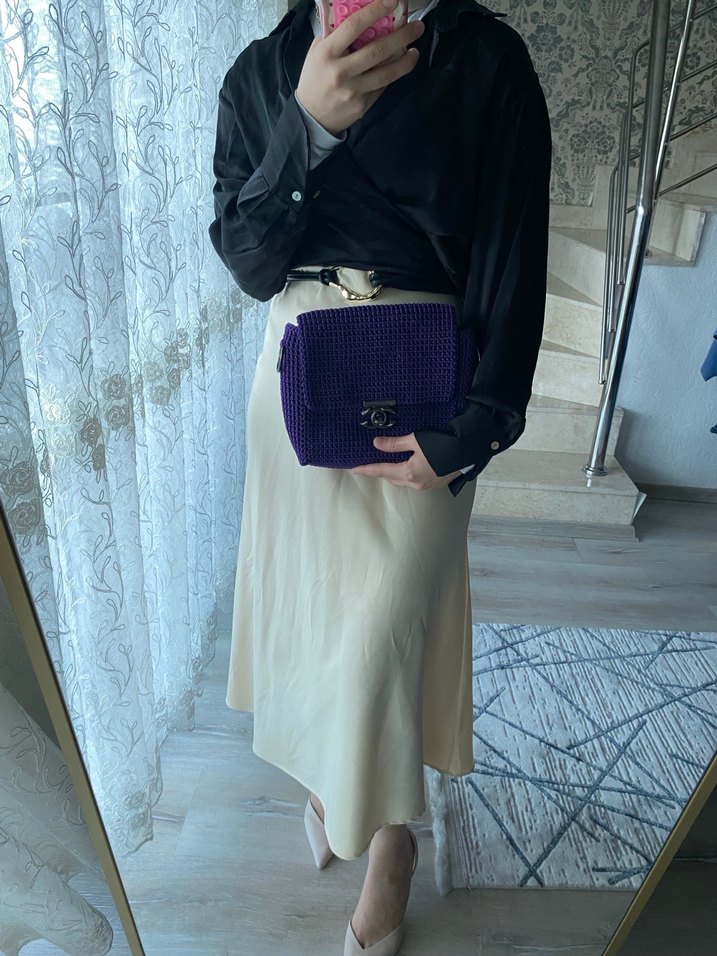 Örgü kumaştan yapılmış, açık mor renkte, desensiz kadın clutch çanta. Günlük kullanıma uygun, trend normcore Paris tarzına uyum sağlar.