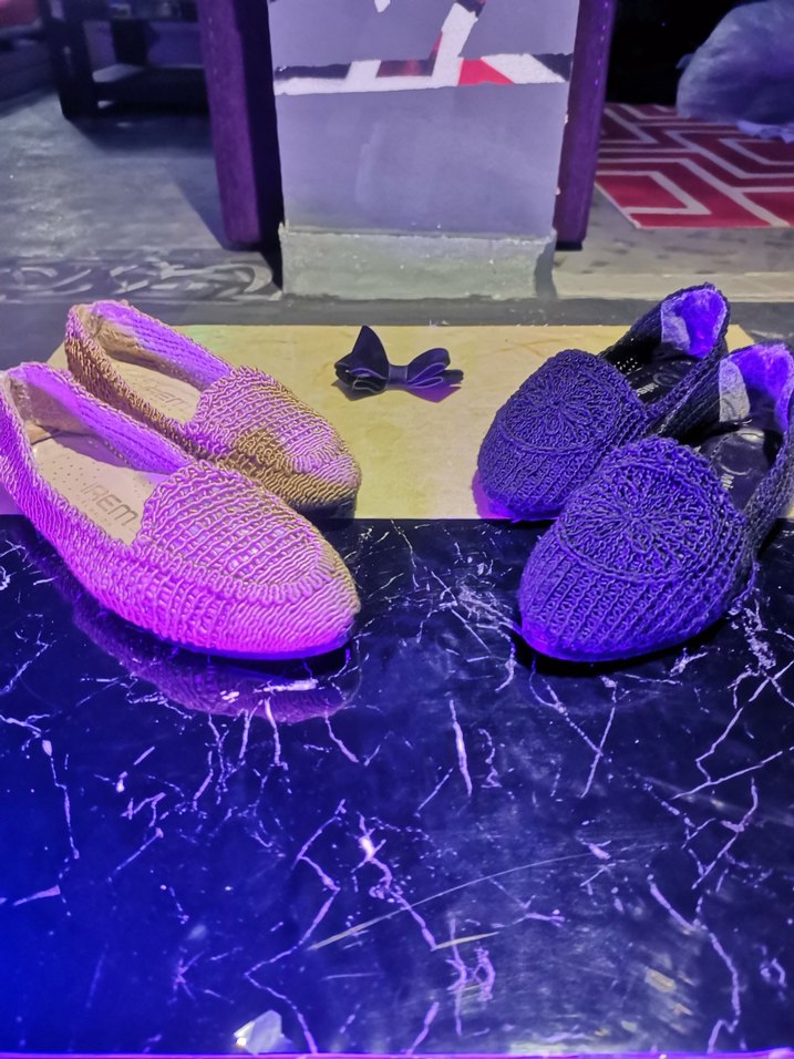 Mor örgü kadın espadril, dolgu topuklu ve nakış desenli. Bohem ve minimalist tarzda, günlük kullanıma uygun.