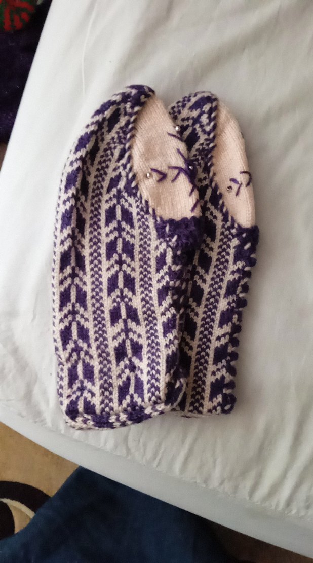 Koyu mor örgü kadın eldivenleri, rahat ve bohem tarzda desenli. Yumuşak ve sıcak örme kumaştan yapılmıştır.