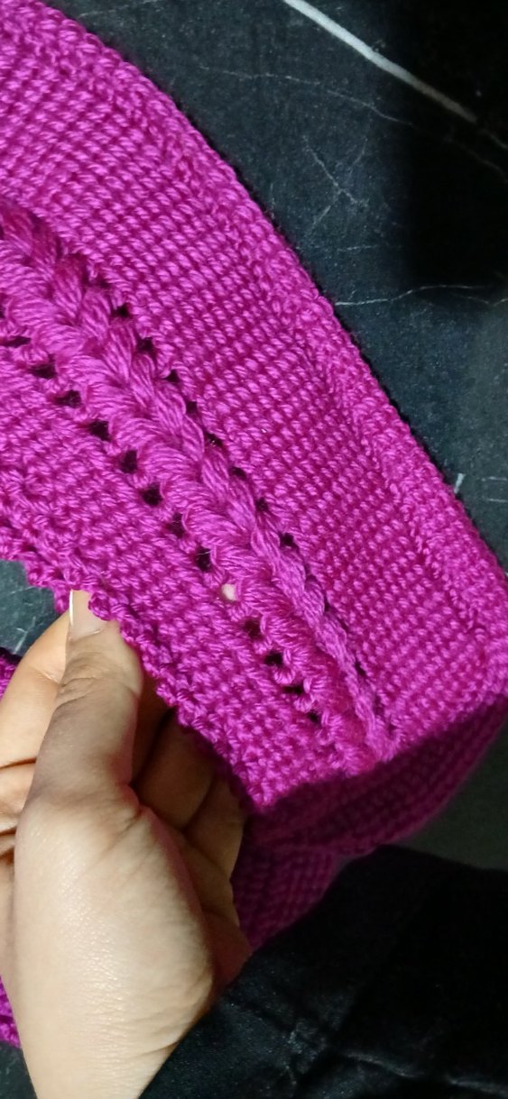 Mor renkli, parlak örgü dokusuyla kadın patik Yumuşak örgü kumaştan, bohem tarzda ve sade, rahat bir görünüme sahip.