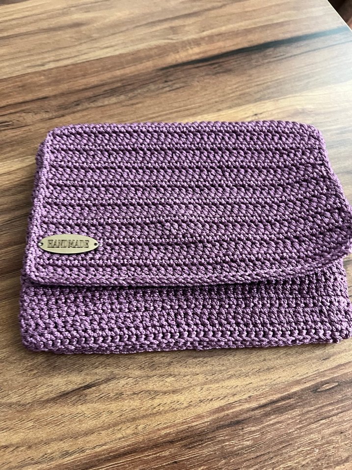 Mor renkli, örgü dokulu, sade ve rahat tasarımlı kadın portföy çanta. Pastel tonu günlük kullanıma ve stile uygundur. İstenilen renkte sipariş alınıp örülmektedir. İçinde iki bölmesi mevcuttur. Cüzdan ve telefon yerleri ayrıdır.