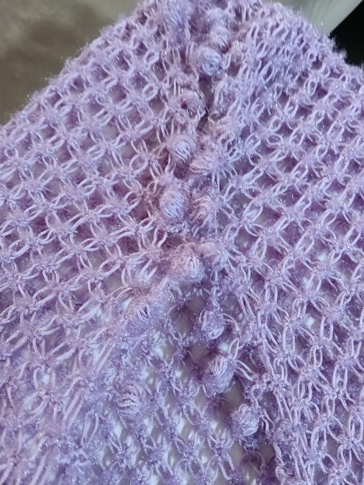 Bu kadın şalı, mor pastel renkte örgü tasarımıyla, rahat ve bohem bir stil sunar.