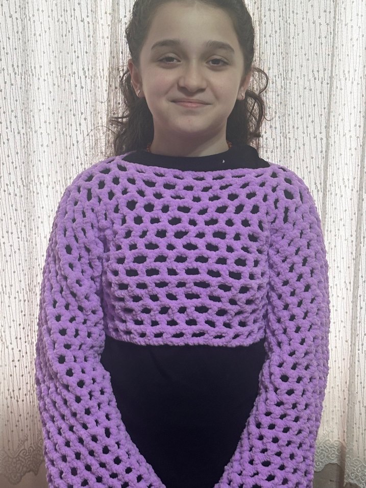 Mor Örgü Kadın Triko Crop Kazak