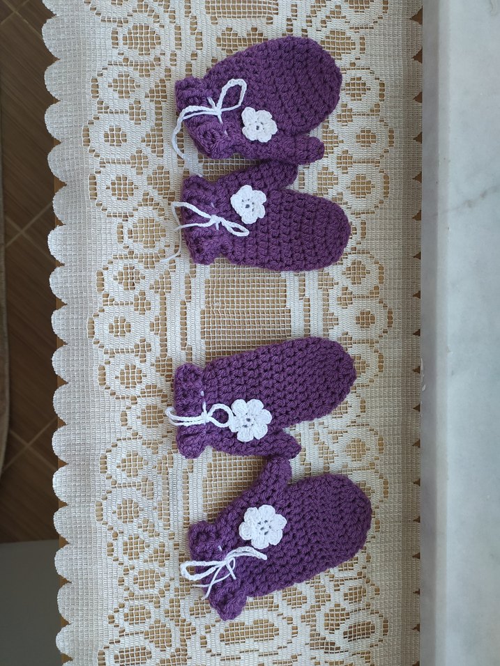 Mor renkli, örgü kız çocuk eldivenleri beyaz çiçek detaylıdır. Yumuşak ve sıcak kumaştan yapılmıştır, bohem tarzı için uygundur. istek üzerine sipariş alıyorum, renk, desen, beden değişikliği yapılabilir. 2 Güne örüyorum, özenle hazırlayıp kargoluyorum.