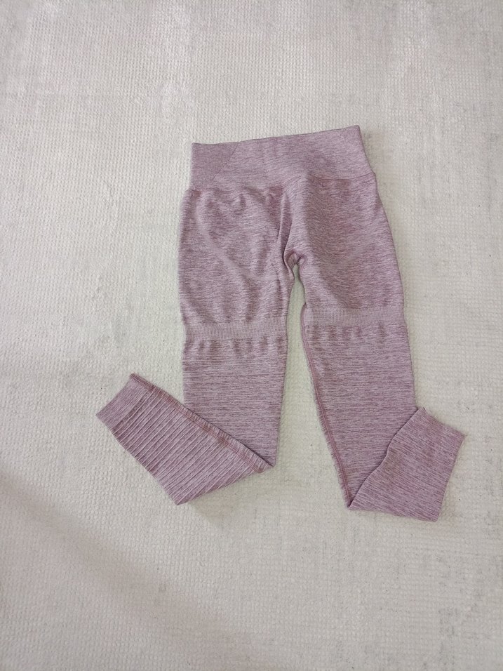 Mor renkli, örme dokulu, sentetik kumaştan yapılmış, midi boy ve dar kesim kadın spor taytı. Spor ve sokak stili için uygundur. ♀️