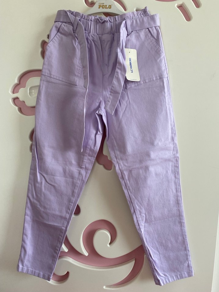 Mor Pamuklu Kemerli Rahat Pantolon kız çocuk