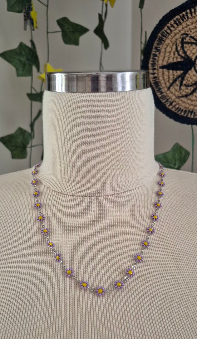 Pastel renklerde çiçek desenli, günlük kullanıma uygun minimal midi uzunlukta bohem tarzda kolye. Toplam 48 cm uzunluktadır .