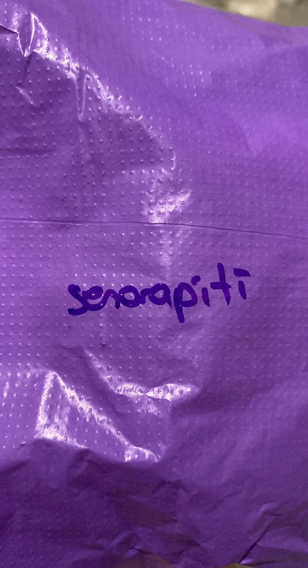 Mor, parlak yüzeye sahip ve "senorapiti" markalı egzersiz matı. Desensiz ve pürüzsüz dokulu.