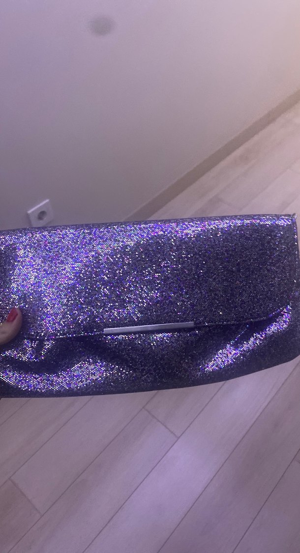 Mor parlak sentetik kumaştan yapılmış, ışıltılı kadın portföy çanta, çağdaş ve göz alıcı bir tarz sunar. ✨