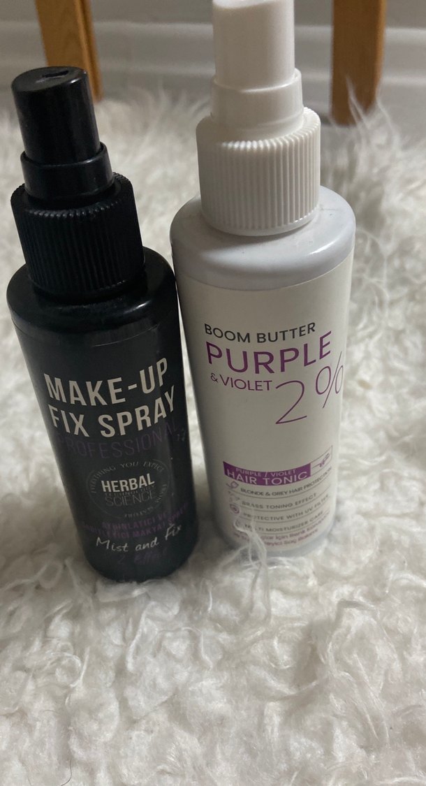 Mor parlak renkte, bitkisel özlü makyaj sabitleyici sprey ve violetten oluşan saç toniği içerir. Makyajı taze tutar ve sabitler. Çok fazla ürün var elimde kulanmadım pek