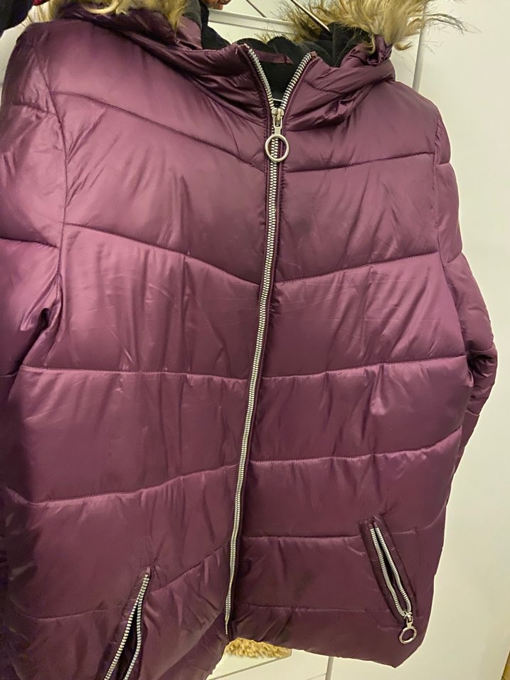Mor renkli, parlak yüzeyli, fermuarlı ve cep detaylı, normal uzunlukta, dar kesim midi kadın mont. Notlu yaka ve askılı kollara sahip, rahat sokak stili için uygun.