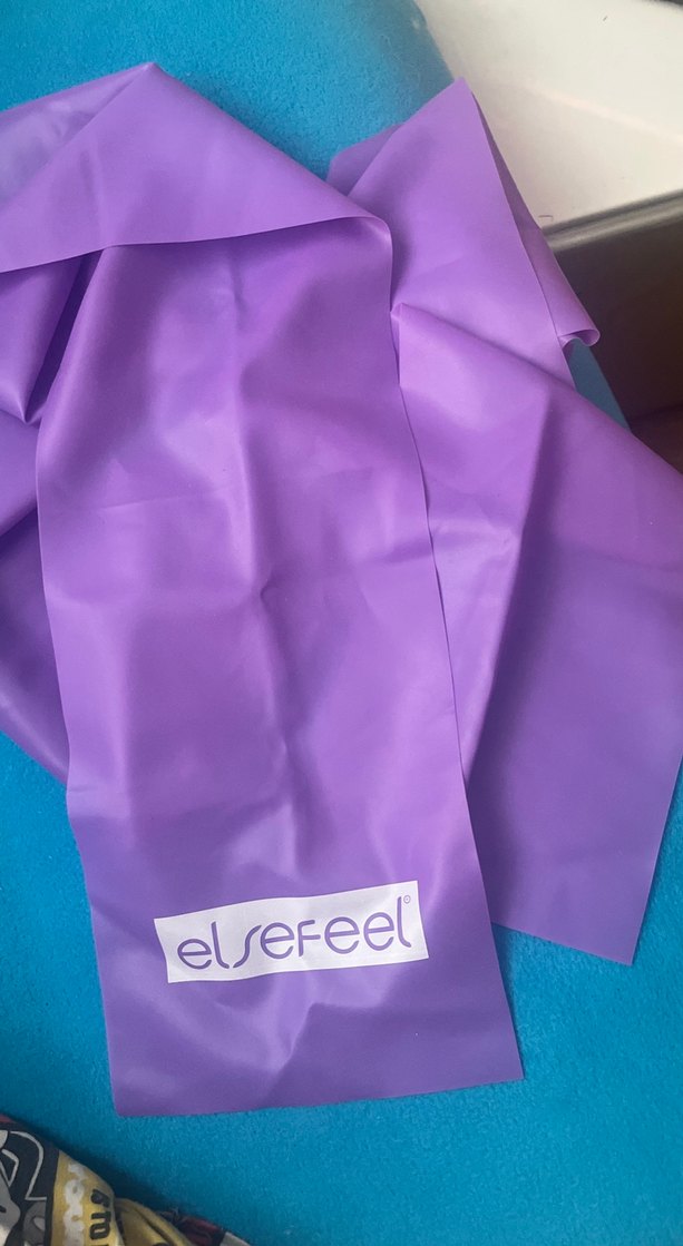 ElseFeel markalı, parlak mor renkte ve baskılı logoya sahip Pilates bandı, esnek destek sağlar. ♀️