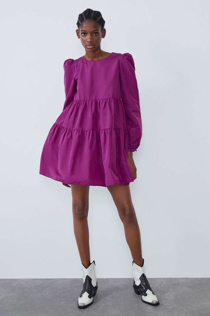 Mor Parlak Renkli Uzun Kollu Elbise