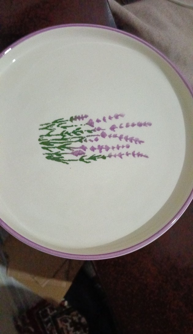 Yemek kabı, mor pastel renkte kenar ve ortasında çiçek desenine sahiptir, yumuşak renklerle zarif bir görünüm sunar.