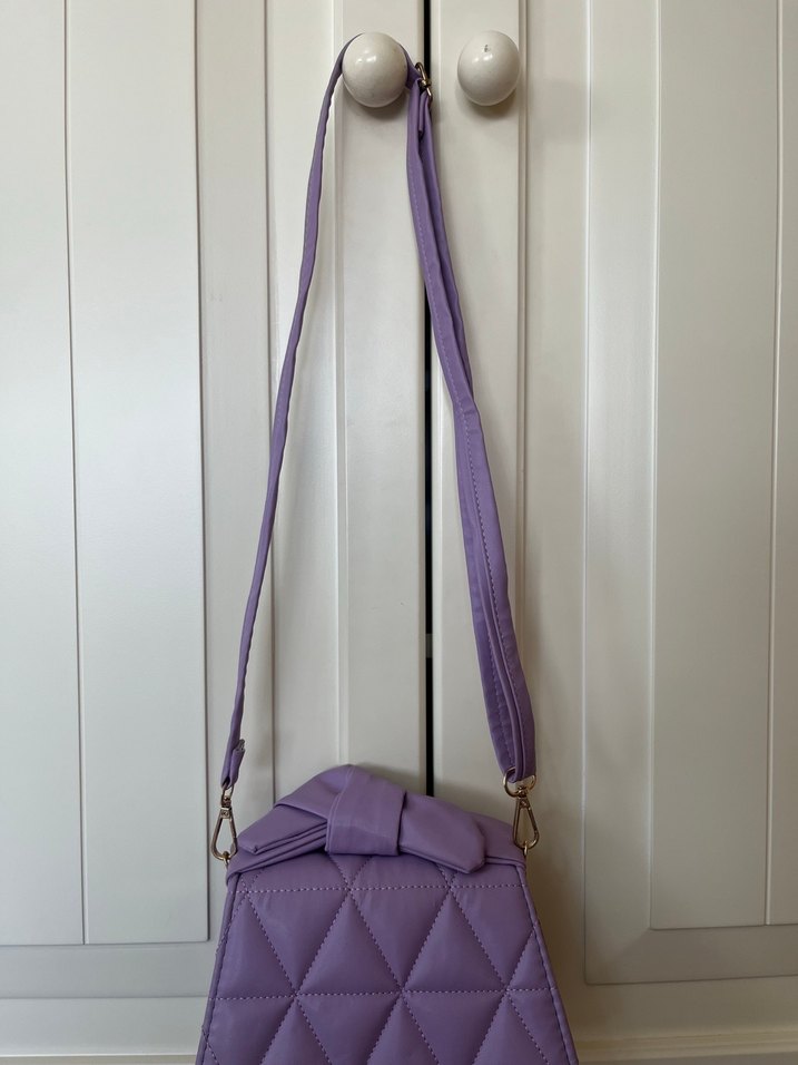Mor pastel renkte, tokalı ve kapitone desenli kadın çantası. Sentetik kumaştan yapılmış, bohem ve retro tarzına uygun bir model.Ürün hiç kulllanılmamıştır.Tertemizdir.