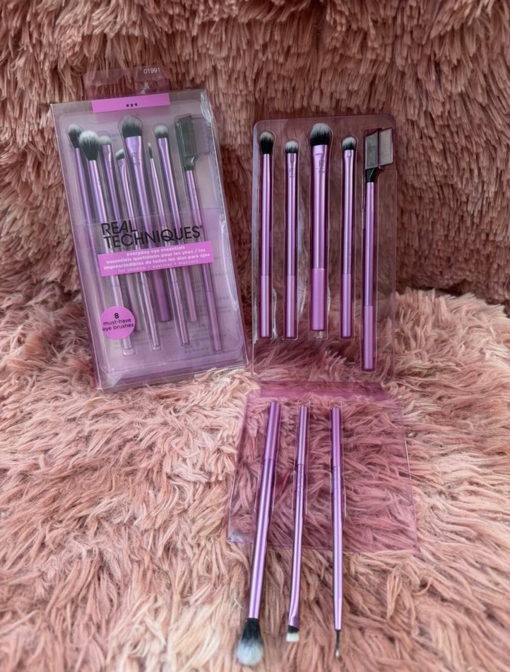 Yumuşak kıllı, metal saplı mor pastel makyaj fırçalarından oluşan set, hassas uygulama için uygundur.