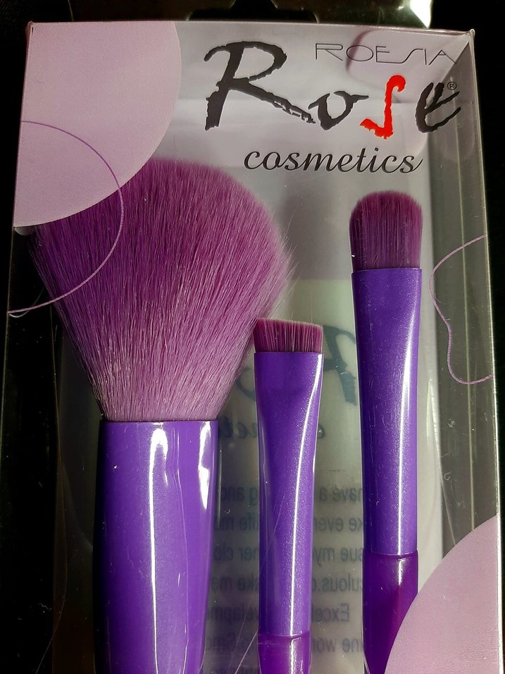 Yumuşak kıllara sahip, mor pastel renkte üçlü makyaj fırça seti, farklı kozmetik uygulamalar için uygundur.