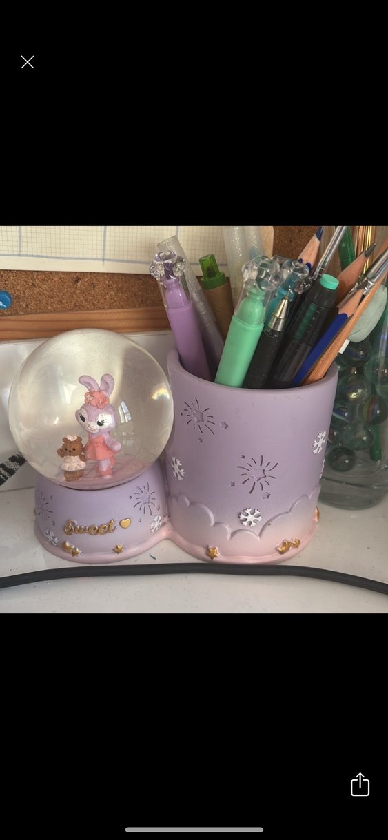 Mor Pastel Masaüstü Kalemlik ve Kar Küresi