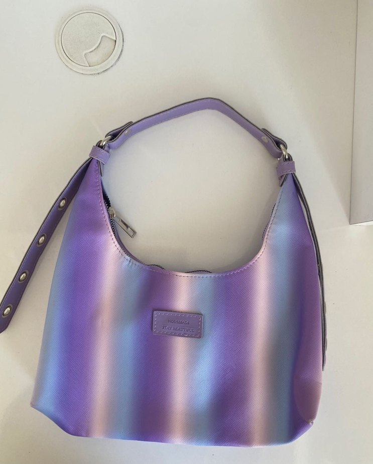 Mor pastel tonlarda bağlamalı detaylı kadın çantası. Sentetik kumaştan üretilmiş, sokak modasına uygun ve günlük kullanıma ideal.