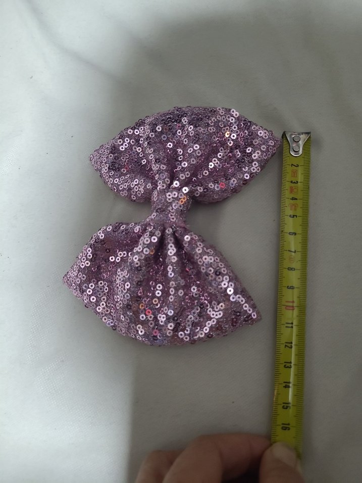 Mor renkli, renkli payetlerle kaplı sentetik kumaştan yapılmış vintage bohem tarzda fiyonk saç aksesuarı.