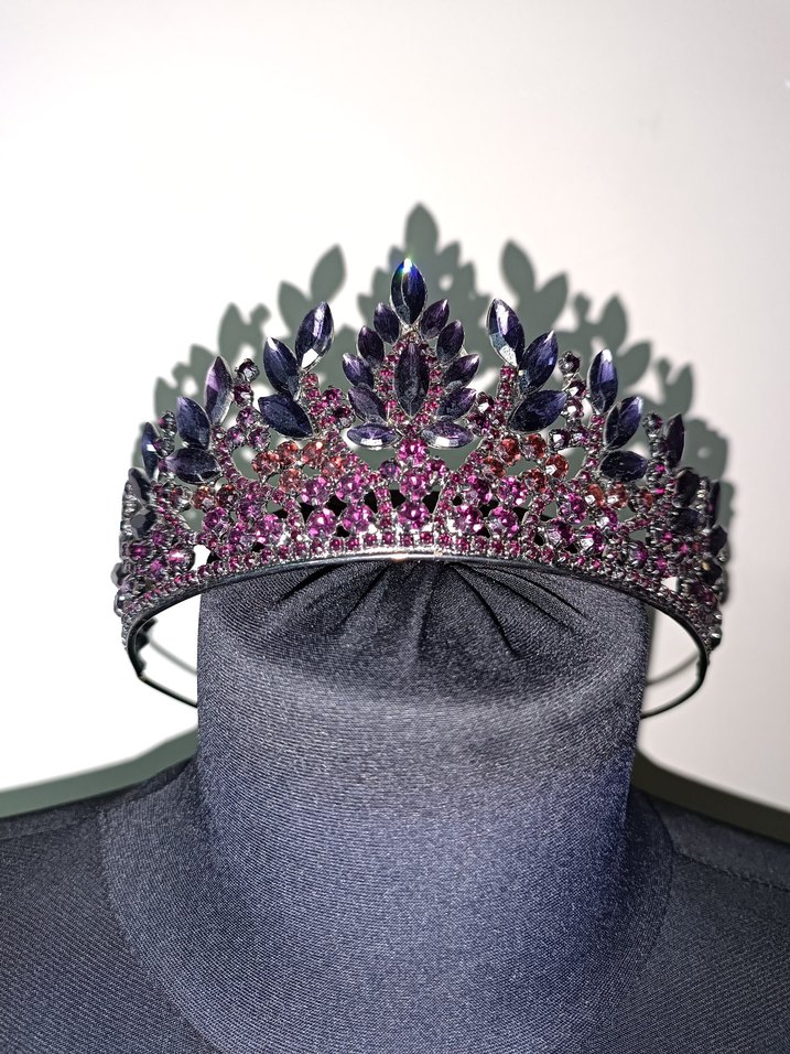 Sentetik kumaştan, koyu mor payetli gotik taç, avangart moda tutkunları için ideal. ✨