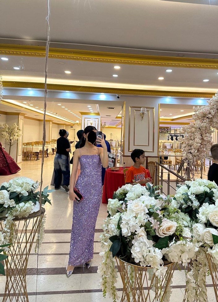 Mor, straplez ve payetli bu elbise, vücuda oturan kesimi ve batik desenleriyle şık parti kıyafeti olarak öne çıkar.arkasında bir yırtmacı vardır✨✨