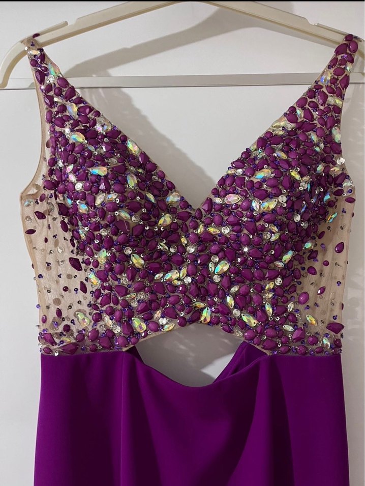 Mor Payetli Uzun Abiye Elbise