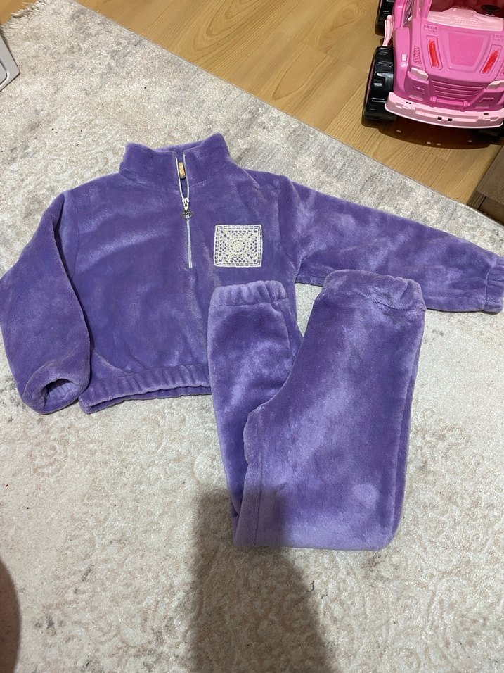 Mor Peluş Kız Eşofman Takımı