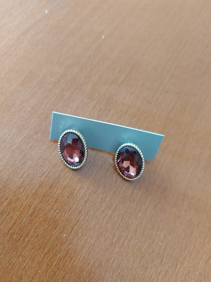 Parlak pembe mor arası düğmeli küpeler, vintage tarzda, küçük ve desensiz tasarımıyla romantik akşamlar için uygundur. hiç kullanılmadı