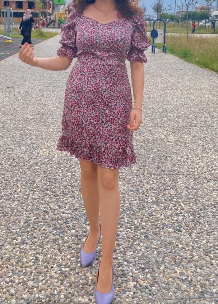 Pastel mor tonlarında saten kumaş bir elbise. Kumaşı çok güzel içinde astarı var kaliteli duruyor. Trendyol markasına ait. #trendyol #saten #satenelbise #mini